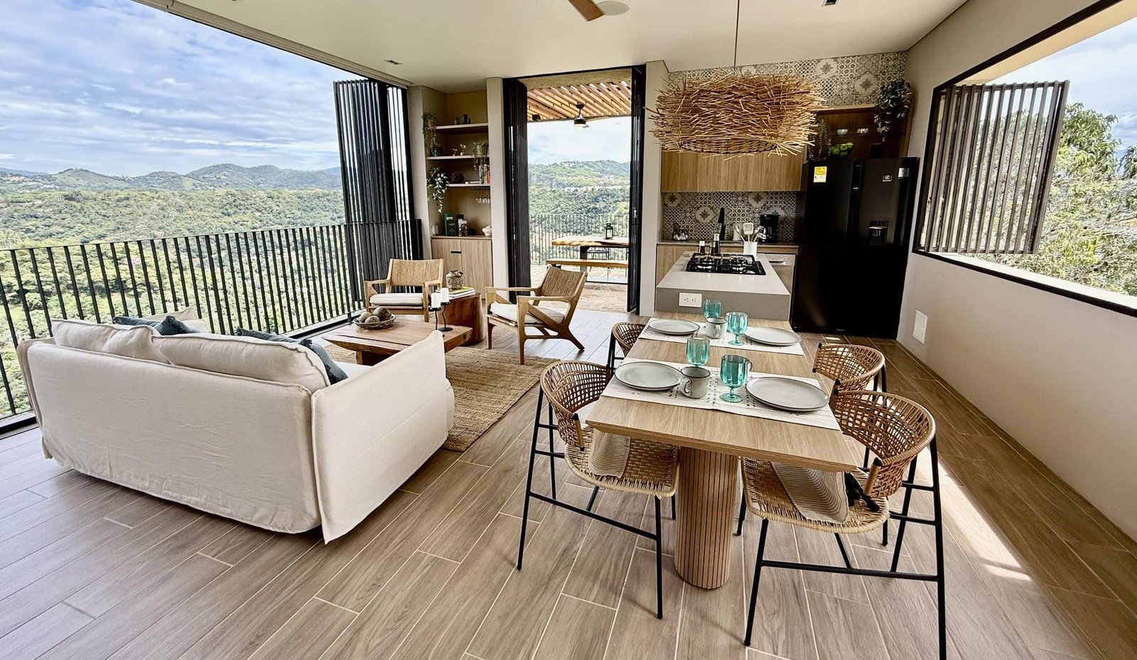 Cada casa, con una área construida aproximada entre 114 y 168 mts², está diseñada para brindar la combinación perfecta de naturalidad y funcionalidad. Cuentan con 2 habitaciones, salón comedor, cocina abierta, comedor exterior, balcones contemplativos, 2 baños, patio de ropas y zona de parqueadero.